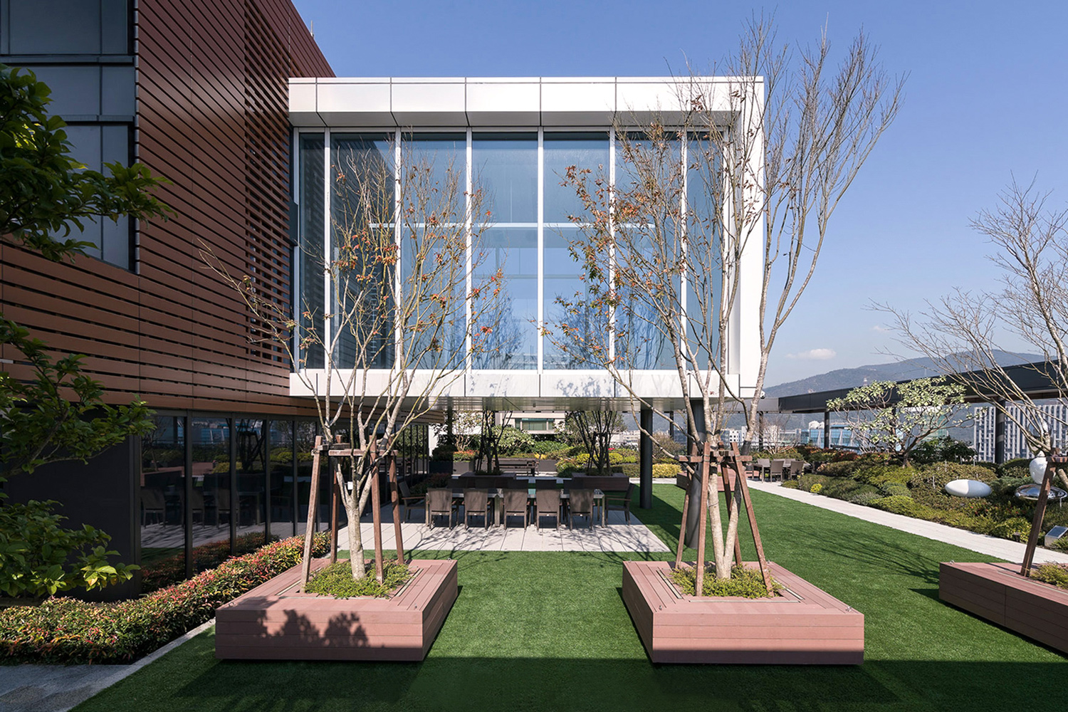 德孚瑞光辦公大樓以綠色生態網絡為願景,藉垂直綠化串連地景與建築。